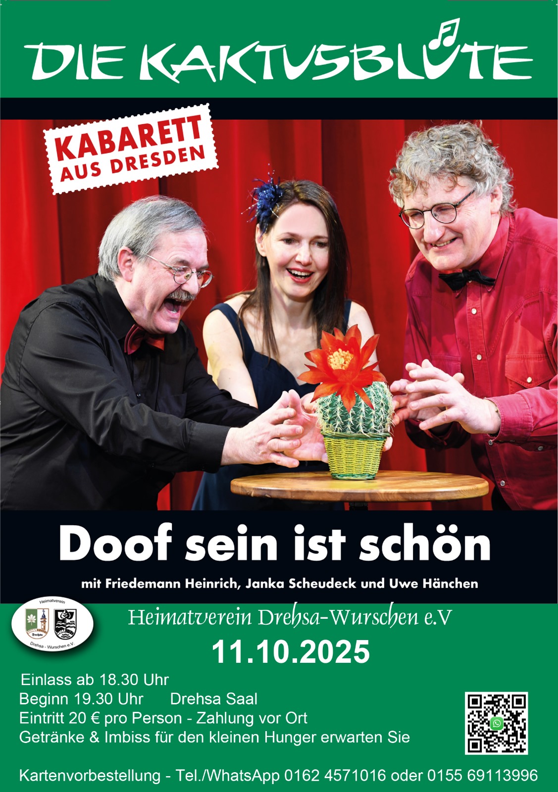 Die Zeiten ändern sich, mal mehr, mal weniger – und so widmet sich das Dresdner Kabarett „Die Kaktusblüte“ diesmal erneut Themen, bei denen die große Politik und der alltägliche Schwachsinn aufeinandertreffen. Dabei kombinieren Friedemann Heinrich und Uwe Hänchen mit ihrer Pianistin Janka Scheudeck traditionelles Kabarett mit anspruchsvoller Unterhaltung. Der Titel des Programms darf dabei gern […]